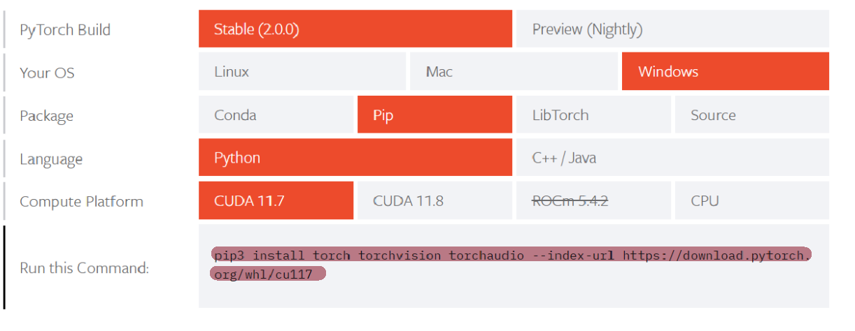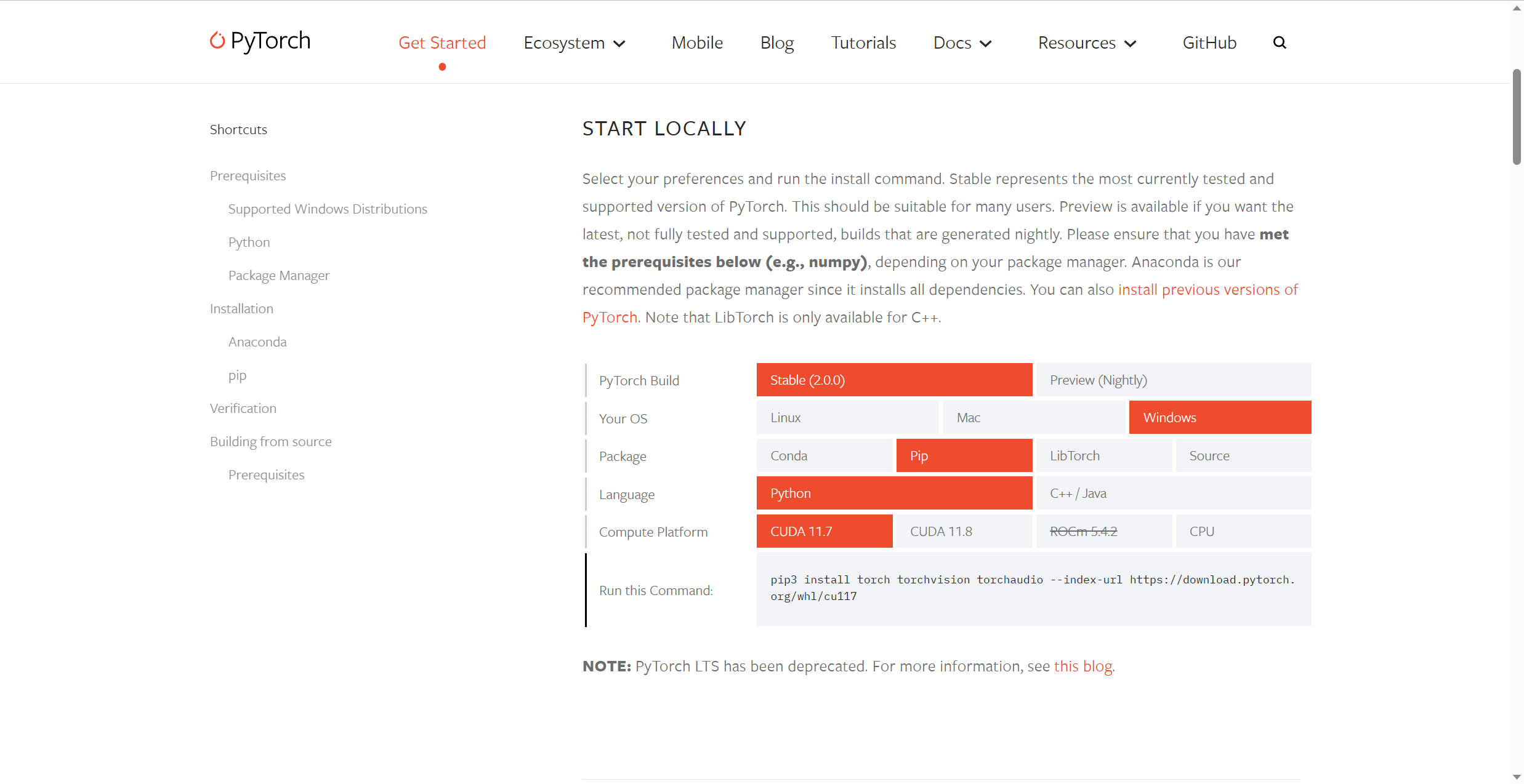 - 这里CUDA的版本建议先去PyTorch官网(https://pytorch.org/get-started/locally/)上查看。